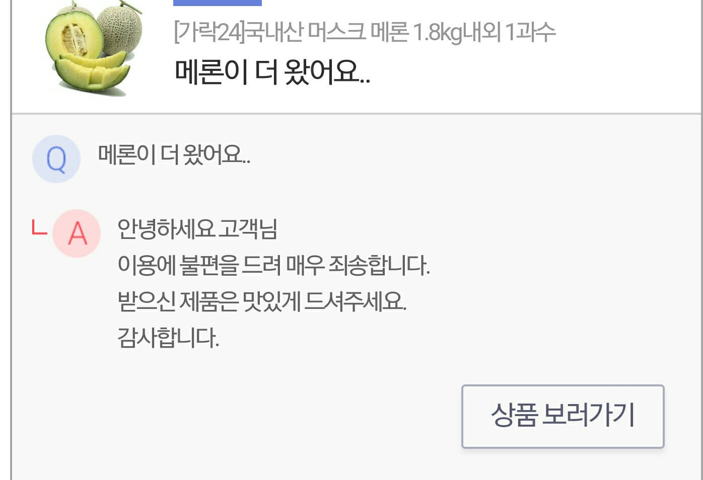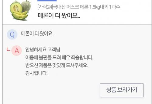 과일이어도 메론이라서 반품해달라고 할 줄 알았는데 맛나게 먹으라시던ㅎ | ||