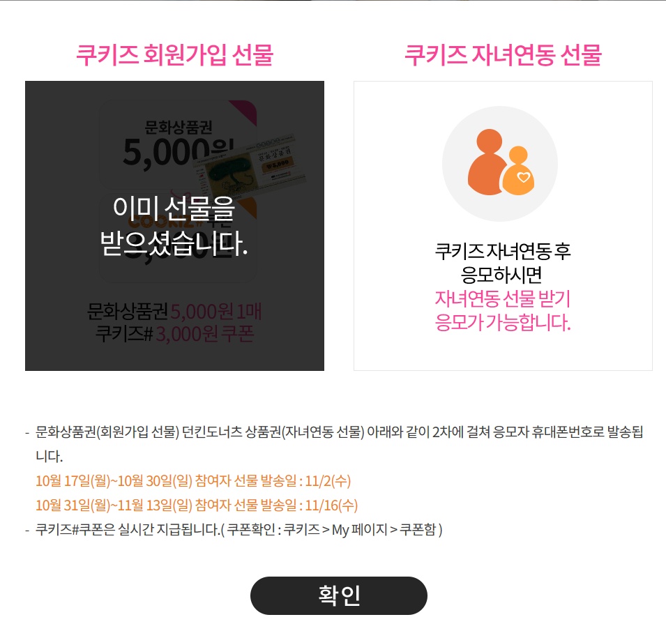 이벤트 응모시 문상5000원과 쿠키즈앱에서 살수있는 3000원쿠폰줌(기프티로 살수있어요)