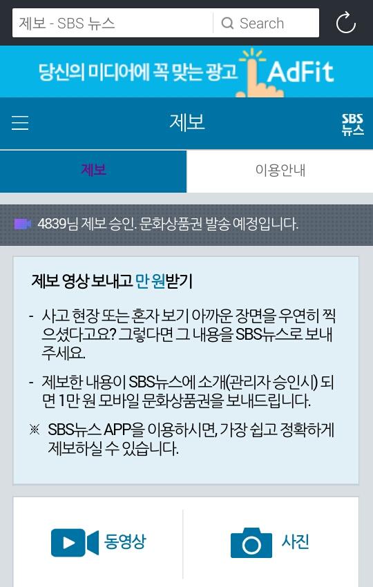-제보한 내용이 SBS뉴스에 소개(관리자 승인시) 되면 1만 원 모바일 문화상품권을 보내드립니다.