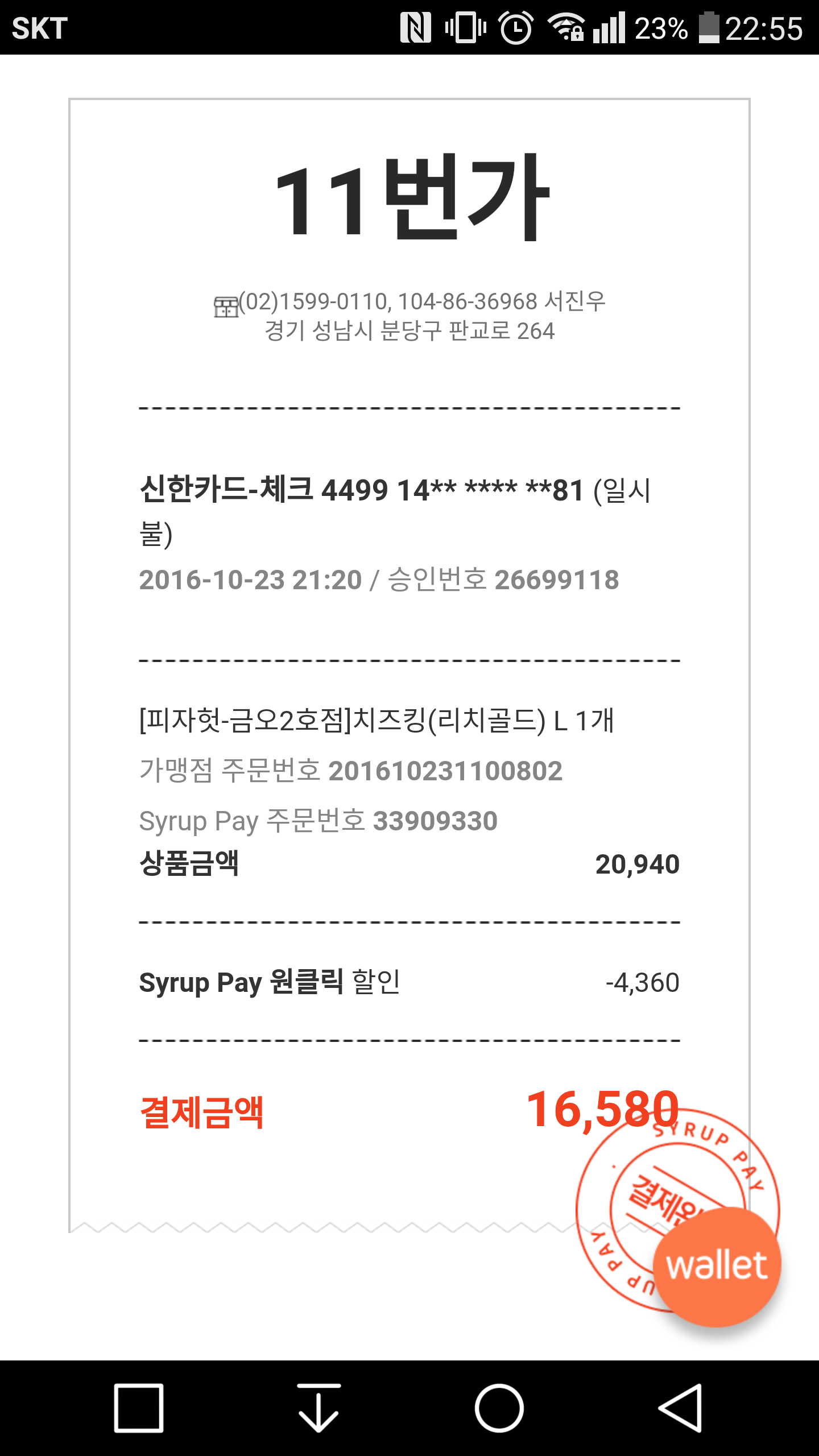 주말 알바 마치고 집에 와서 세탁소 가는 김에 출출하기도 해서 11번가 픽업 할인 40% 받아서 주문했어요.. 주말 추가할인에 멤버쉽 할인까지 하니까 16,580원이 나오네요..