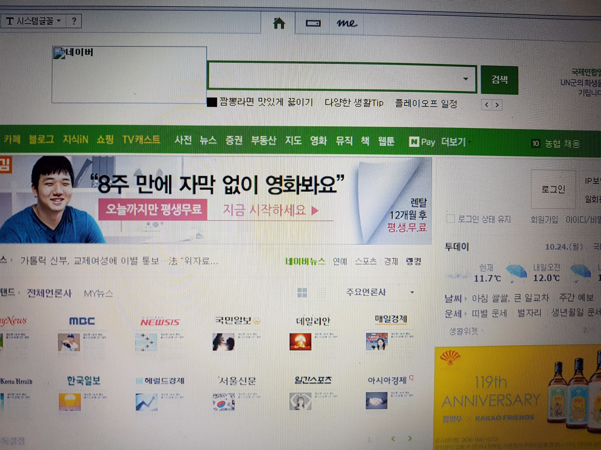 네이버 일시적 오류인지...새로고침해도 전 똑같네요..
