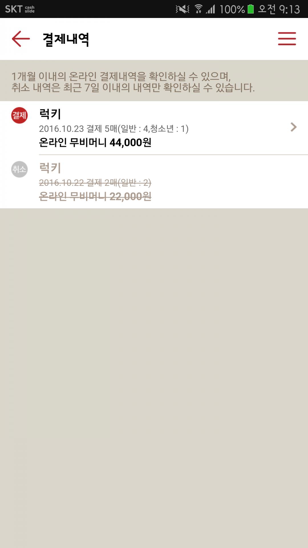 예전에 구매한 관람권 다섯장으로 관람했는데