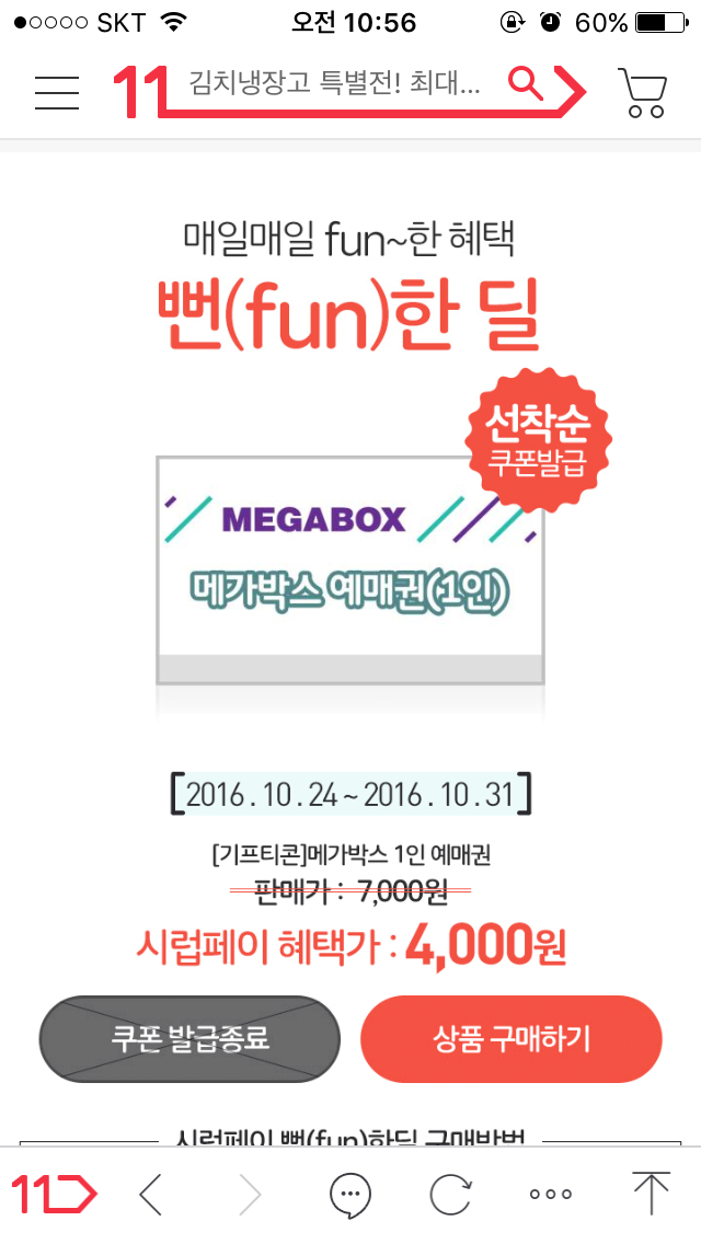 메가박스 쿠폰 11시 정각에 다운받았습니다.