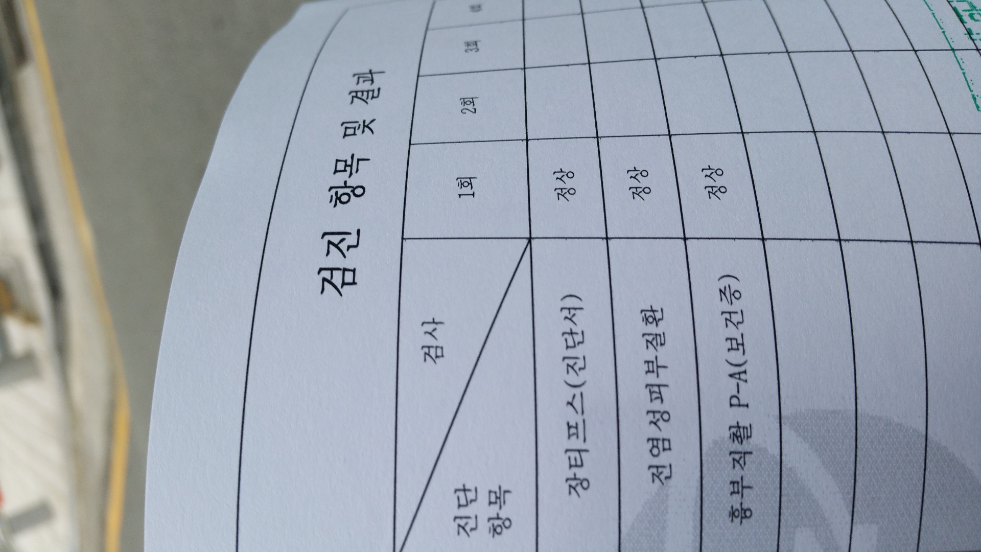 옆쪽에 건강진단결과서라고 적혀있고 검진일하고