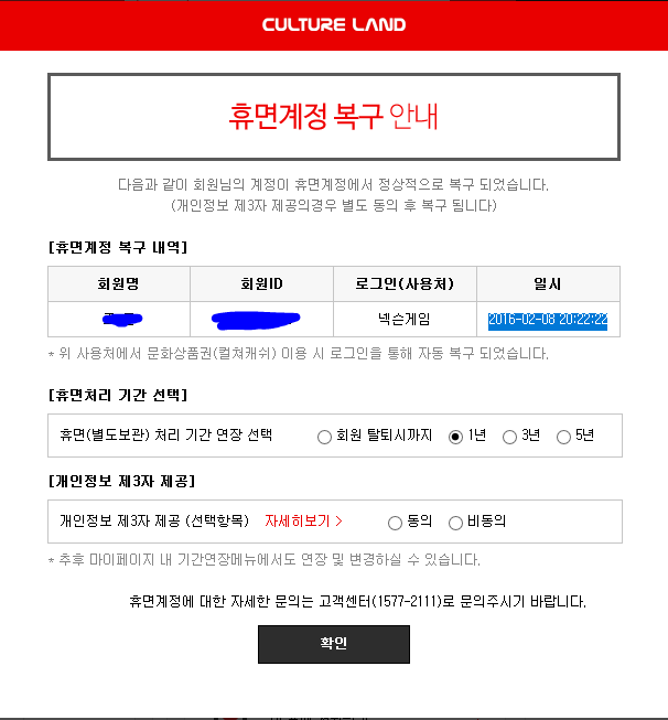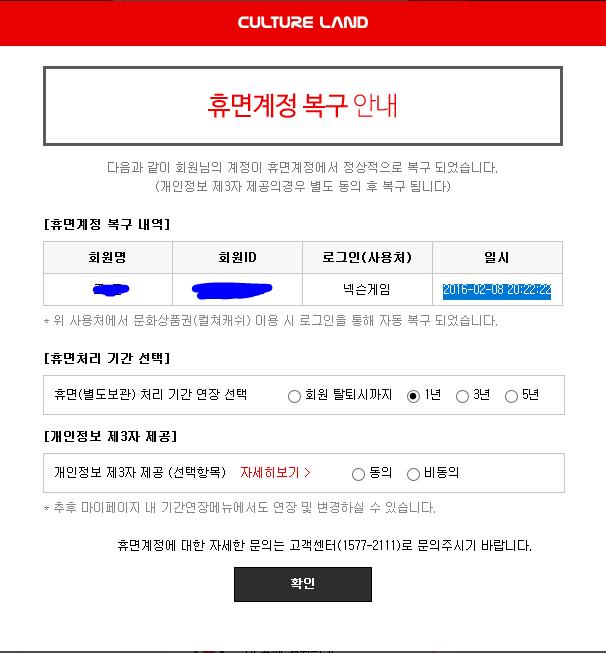 컬쳐랜드로그인했는데 왜 넥슨계정 휴면계정이 뜨는건가요?