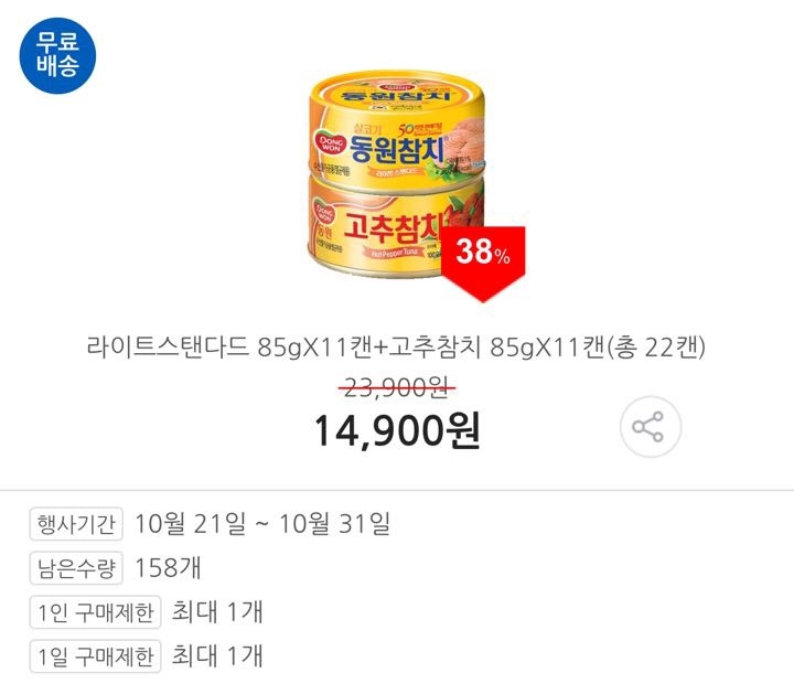 추석때 통조림세트가 많이 안팔렸나 보네영.. 통조림들 쭉 할인해되네요 |