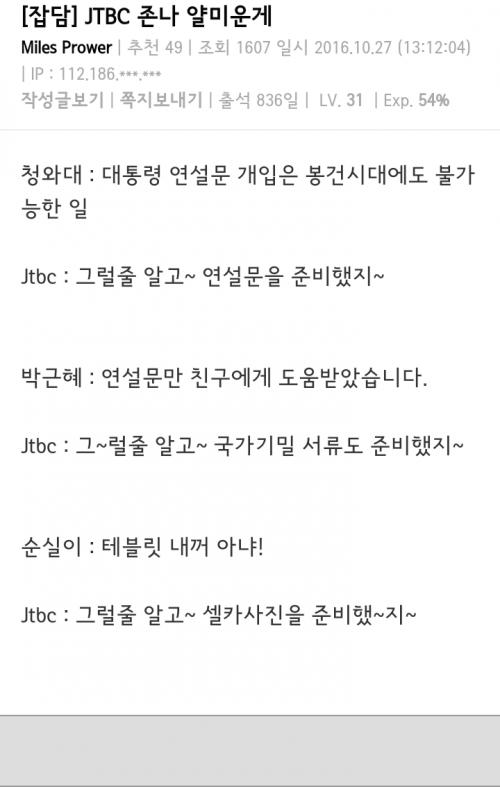 오늘 MBN에서 jTBC겁나까던데 ㅋㅋㅋㅋㅋㅋ 논리적이지못해서 너무재밌더라구요. | ||