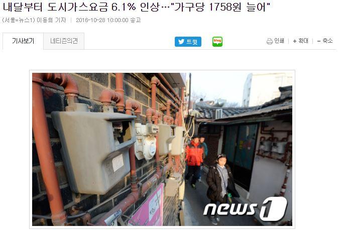 11월부터 도시가스 요금 평균 6.1%인상, 이맛헬