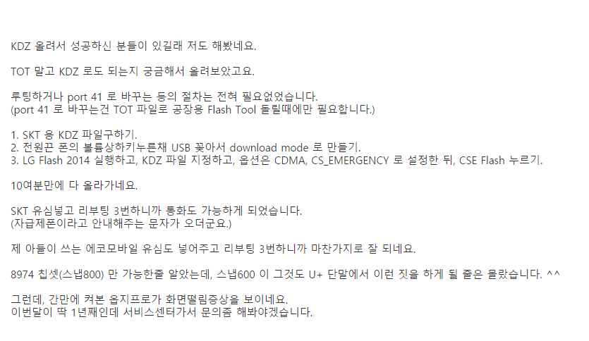 유플 지프로2 타사펌으로 올리신 분들은 다.. 루팅하고 빌드 수정하고 KDZ로 미셨나요?