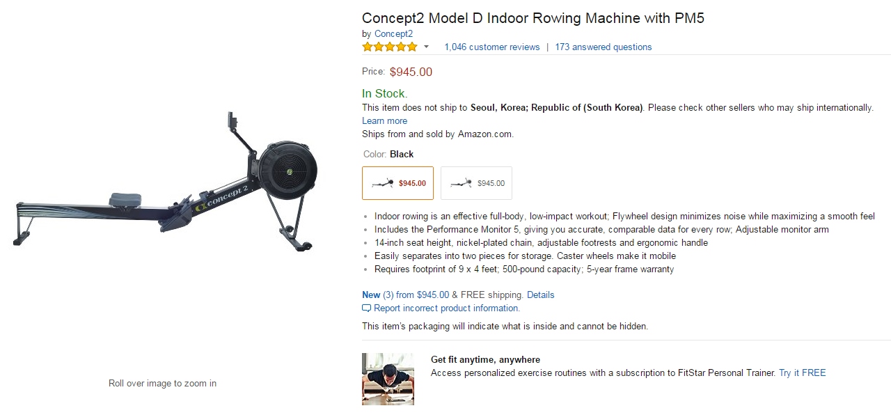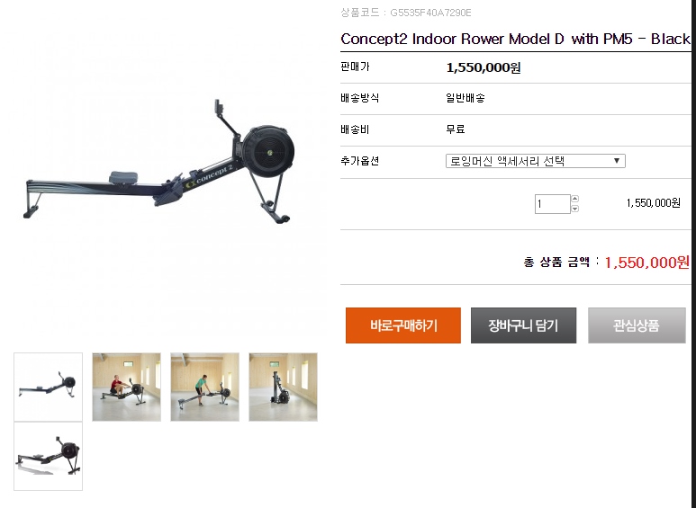 국내에서는 Concept2 한국 총판을 통해서 155만원에 일정기간 무상A/S까지 보장받을 수 있구요..
