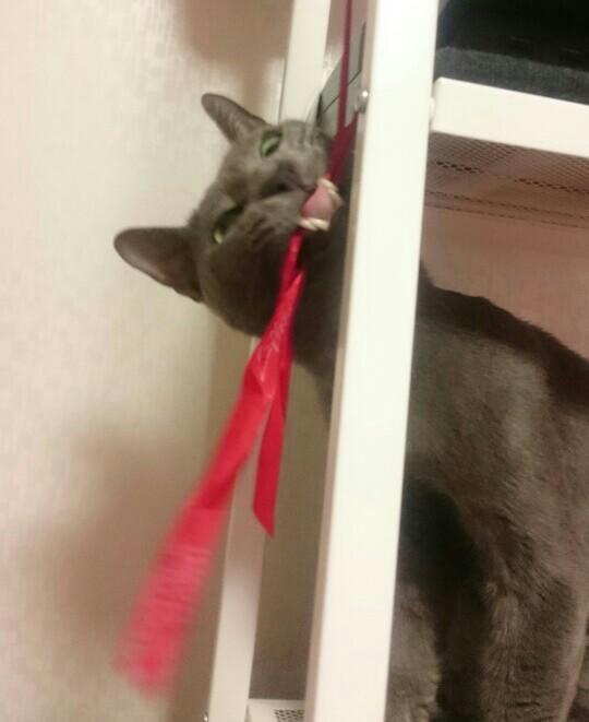 매달아둔 빨간끈은 고순이 스트레스 해소용