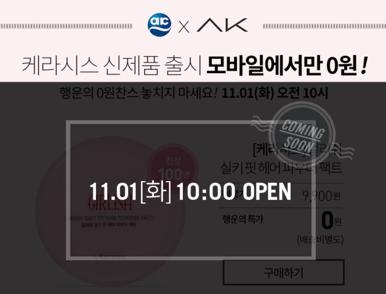 [10시오픈] AK몰 앱 (메인에서, 아래 배너는 찾으세요..) 애경제품 주의