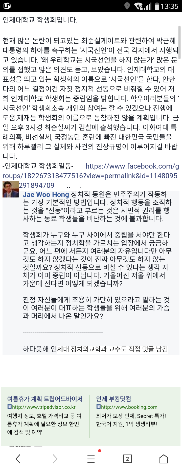 현시국에 대한 인제대 인식수준.facebook > 자유게시판