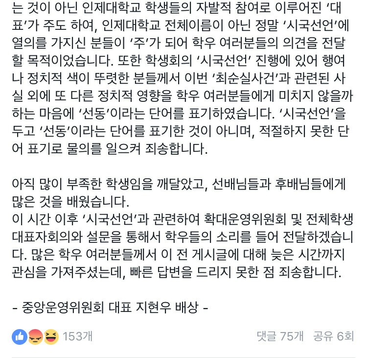 인제대 총학생회는 반성을 좀 했으면 하는 바램입니다