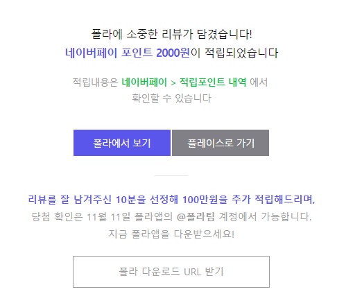 폴라에 포토리뷰 남기기 있어요~ 이거 리뷰 올리기만하면 2000포인트 줍니다 ㅋㅋ