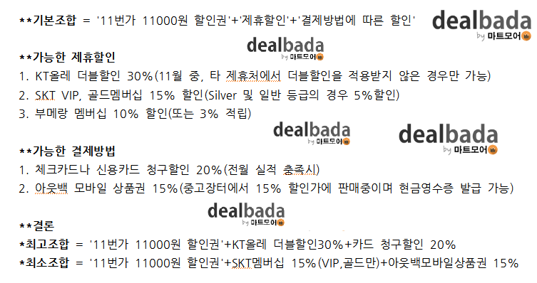 어제 11번가에서 아웃백 11000원 할인권을 1100원에 판매했고 이를 이용한 할인 방법에 대한 나열입니다.​