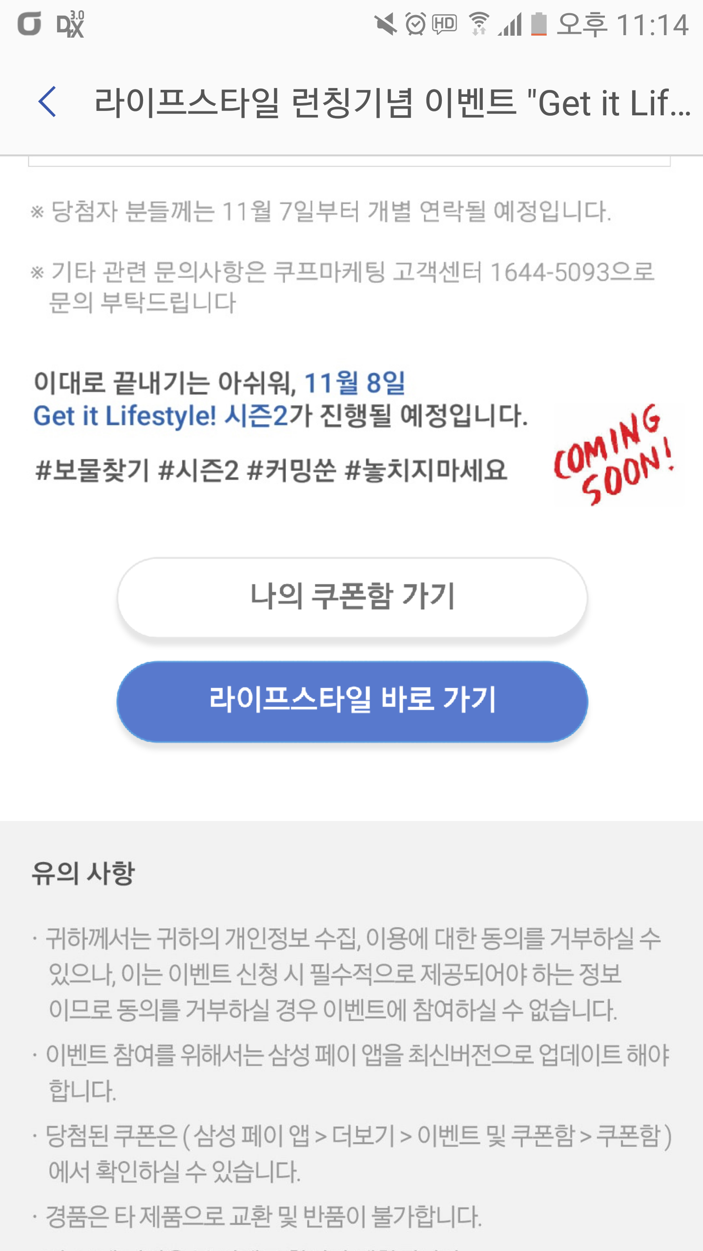 삼성페이 보물찾기 시즌2 하네요