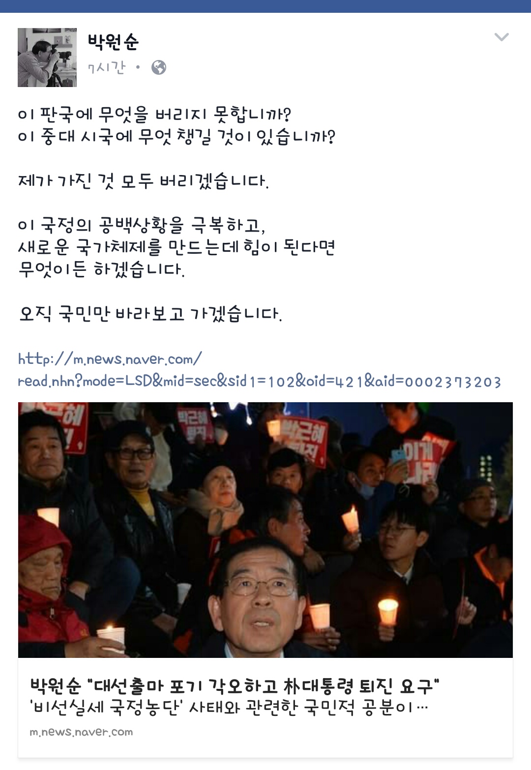 박원순 "대선포기 각오하고 퇴진요구 나선다" > 자유게시판