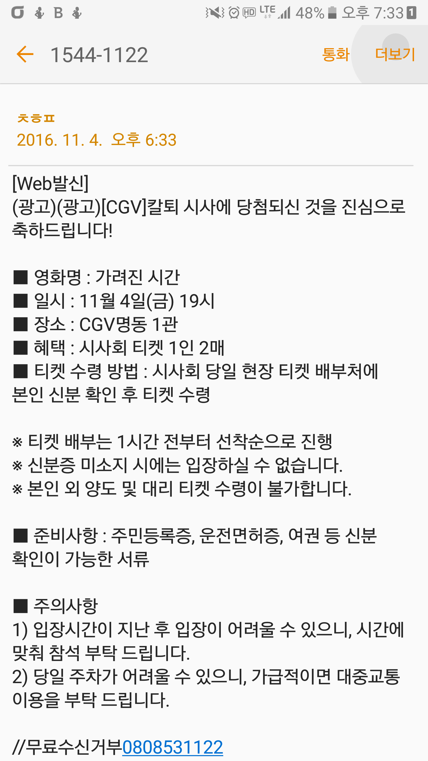 ㅊㅎㅍ라고 와서 첨엔 스팸인줄 알고 확인도 안 하고 있었다죠ㅋㅋ 이벤트 게시판 보니까 참석하신 분이 진짜 사람 없다고 글 남겨놨네요. 담당자분 실수하시고 다급히 보낸 것 같아요. | ||