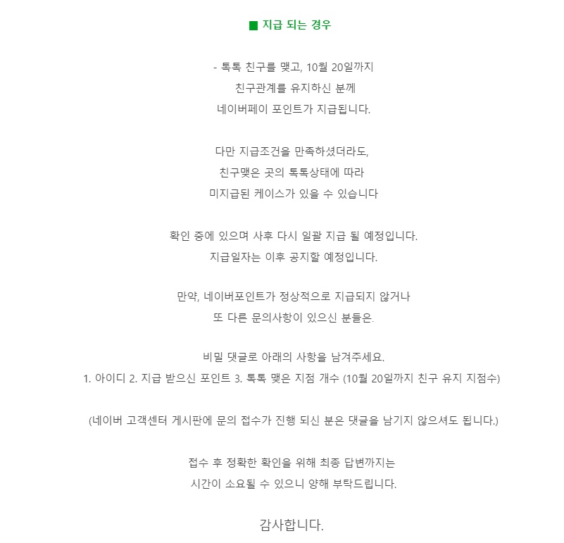 네 애매모호해서리 역시나 문의글남겨야 주는듯 모르고 지나치신분들만 못받으시는거죠 ㅠ.ㅠ |