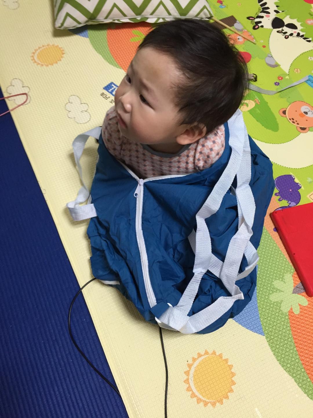 애기한테 바지 잘 어울리네요. 마치 가방 같아요.
