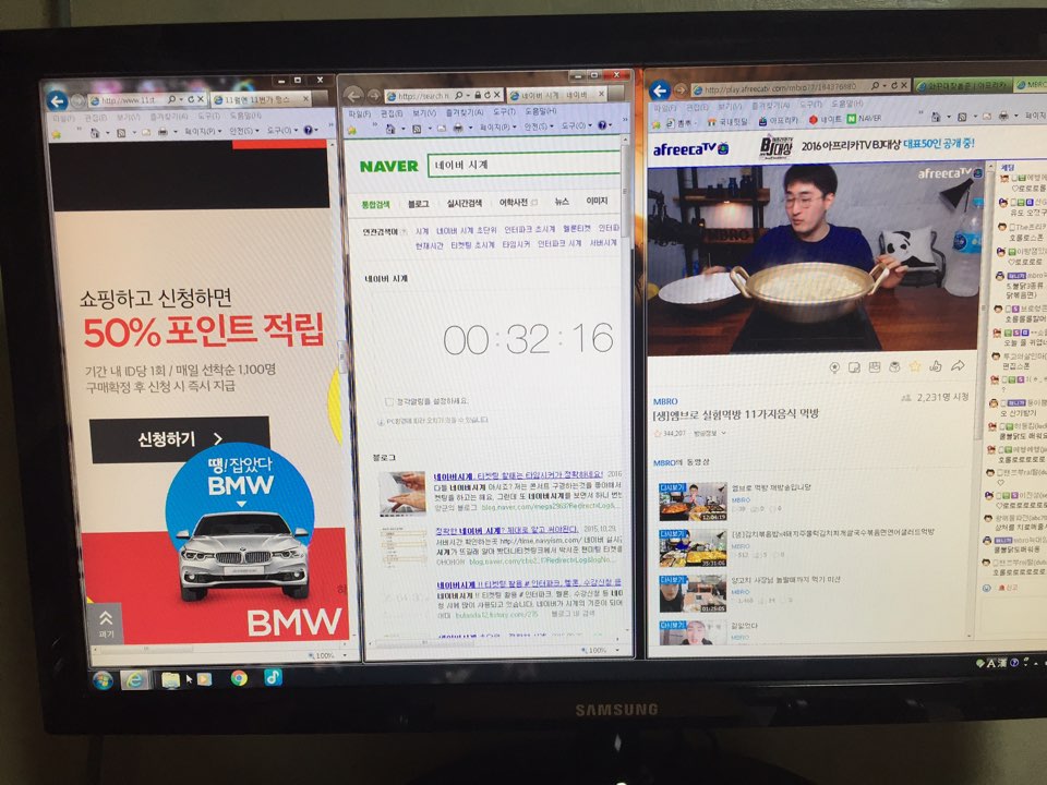 일단 컴터셋팅을 합니다 . 4분의1로 쪼개서 11번가 창 띄어놓습니다 <<<<이게 제일 키포인트 입니다