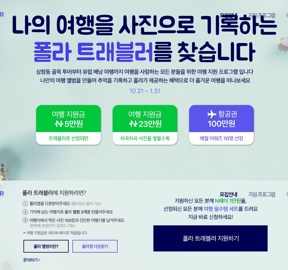 네이버에서 인스타그램 따라서 만든 폴라에서 이벤트하고 있어요