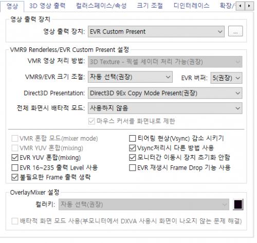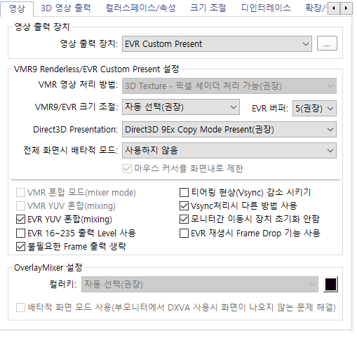 영상 출력 장치를 evr 커스텀 프리셋으로 바꿔줍니다.