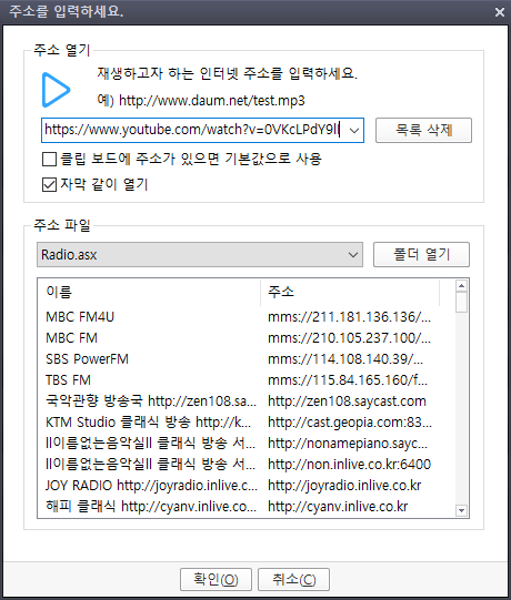이런식으로 창 하나가 뜨는데 저기 주소창에 유튜브 주소를 넣으시면 됩니다.
