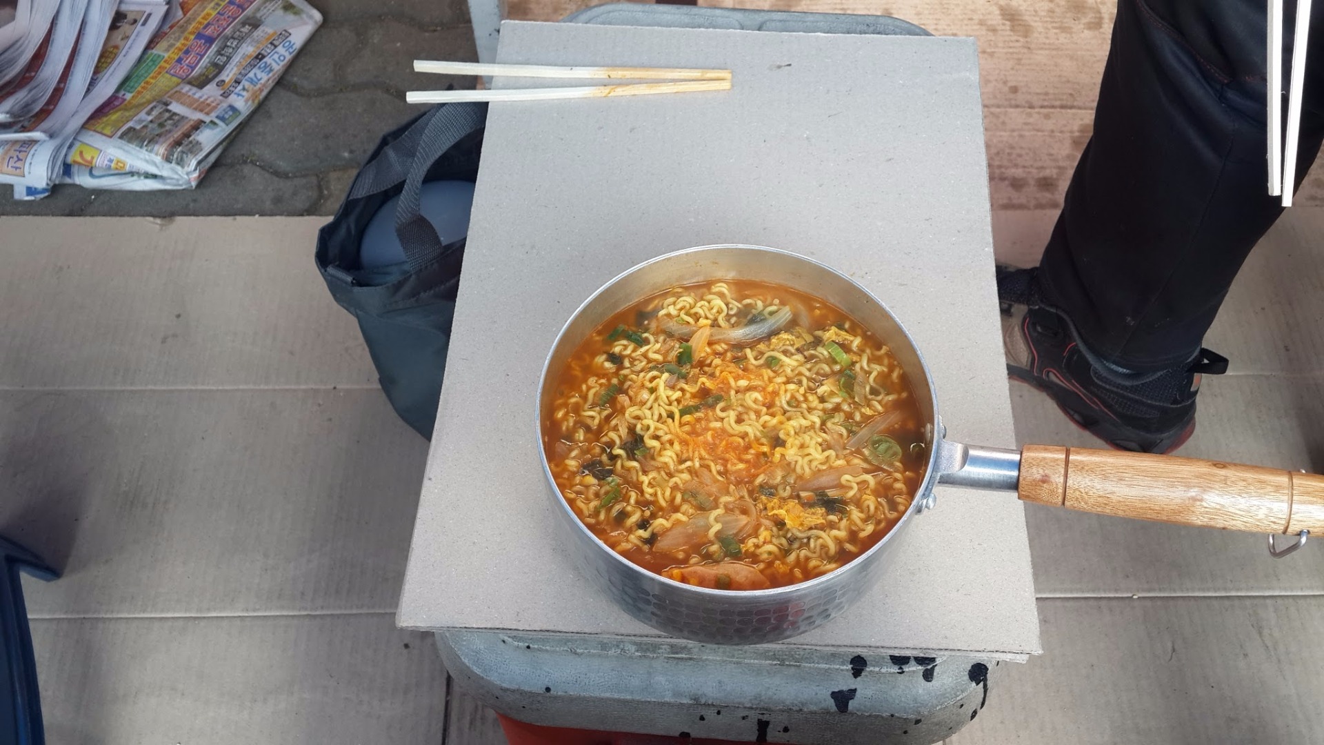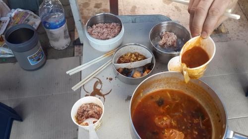 앞에 같이 일하는 사장님이 라면 끓여서 점심 같이 먹자고 해서 같이 먹었어요...^^매콤하고 밖에서 먹어서 그런지 더 맛있네요