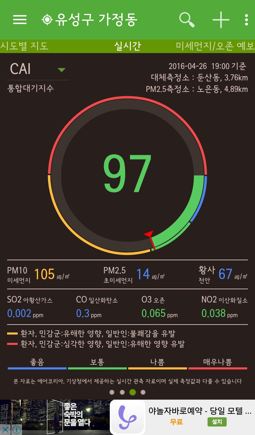 미세먼지가 노란색이긴 하지만, 여태까지의 공기를 생각하면 이게 어딘가요