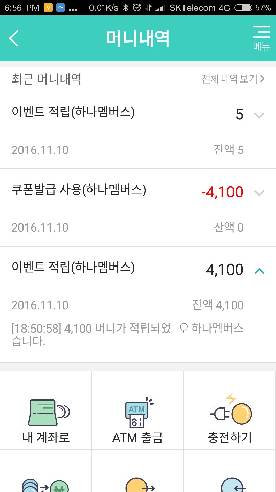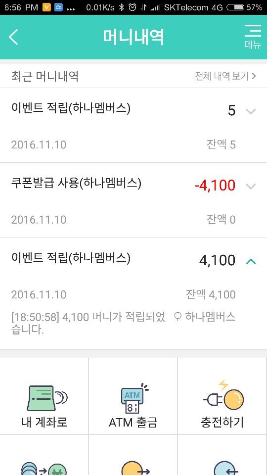 내역을 보니..4100원이 들어왔다가 빠져나간걸로 나왔습니다;;