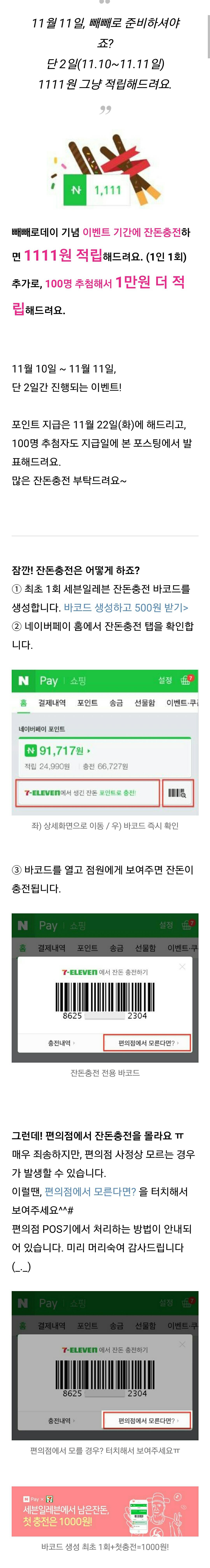 고작 1,111원 주면서 전국 세븐 일레븐 알바들 교육 시키게 하려는 꼼수에요.