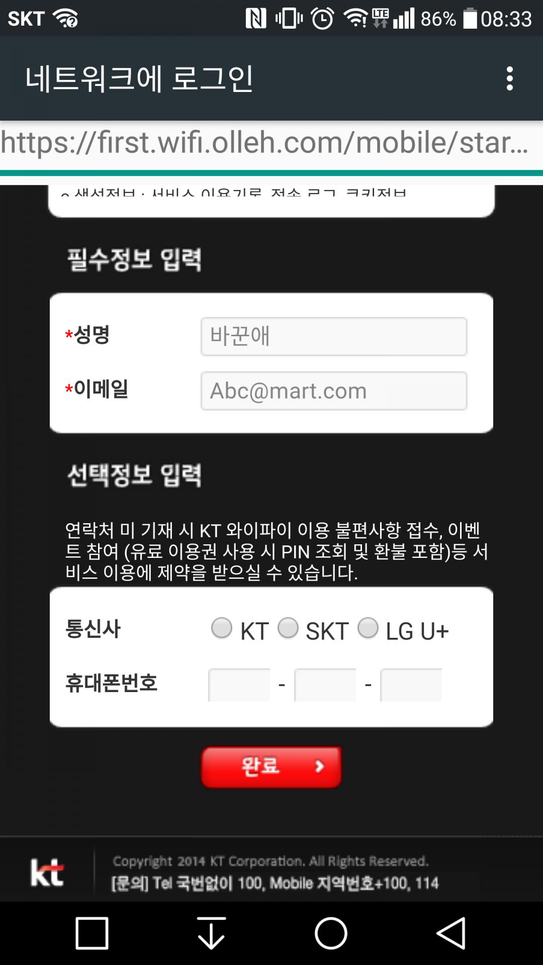 스타벅스에서 올레 WiFi 사용할 때 이렇게 썼어요.. > 자유게시판