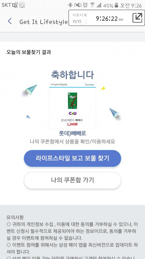 삼성페이 빼빼로...뭐지요ㅠㅠ