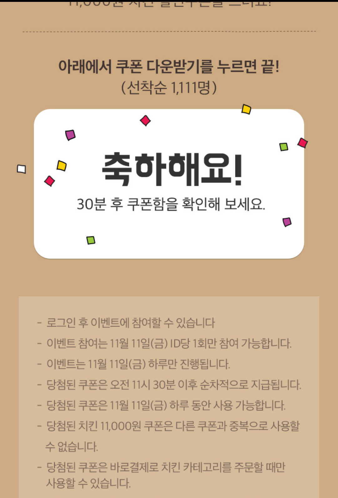 저는 2개 동시에 도전했는데 1개만 성공했네요. 쿠폰이 당일 사용이라 다행이라 해야할지..^^; |