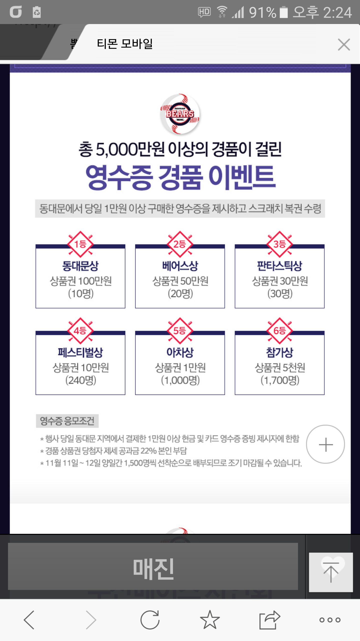 1만원이상 영수증들고가면 복권주는데