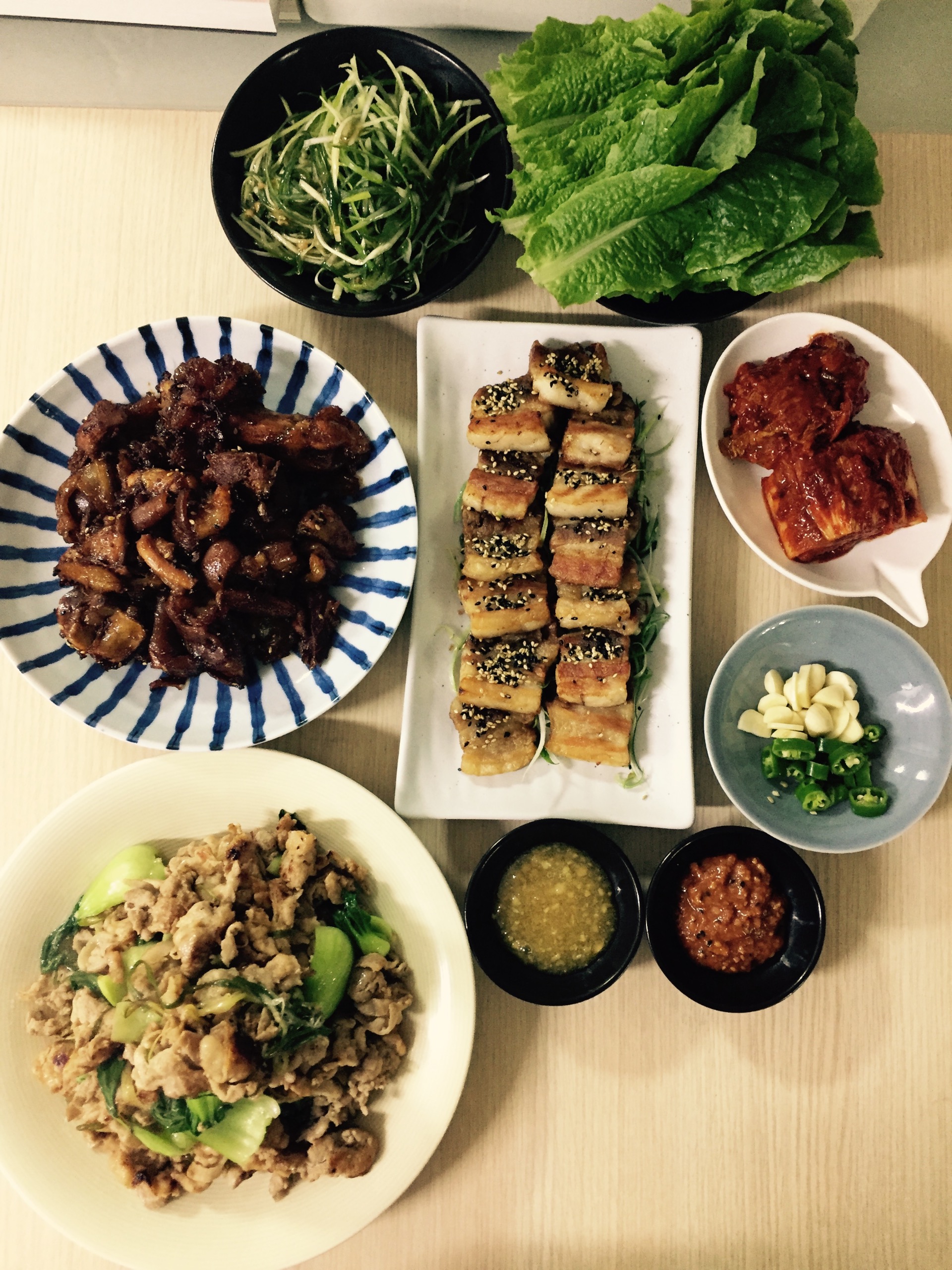 무슨 날일때! 맘먹고 시켜먹는 족발+보쌈 셋트 시키고 친동생이 축하해주러 와서 대패삼겹+대파+청경채 볶음만 준비했어요. 이럴때 남이 해주는 음식 먹는것 아니냐며 ㅎ 자고나면 오늘이 지나가는게 아쉬워 아직도 혼자 술마시고 있습니다~