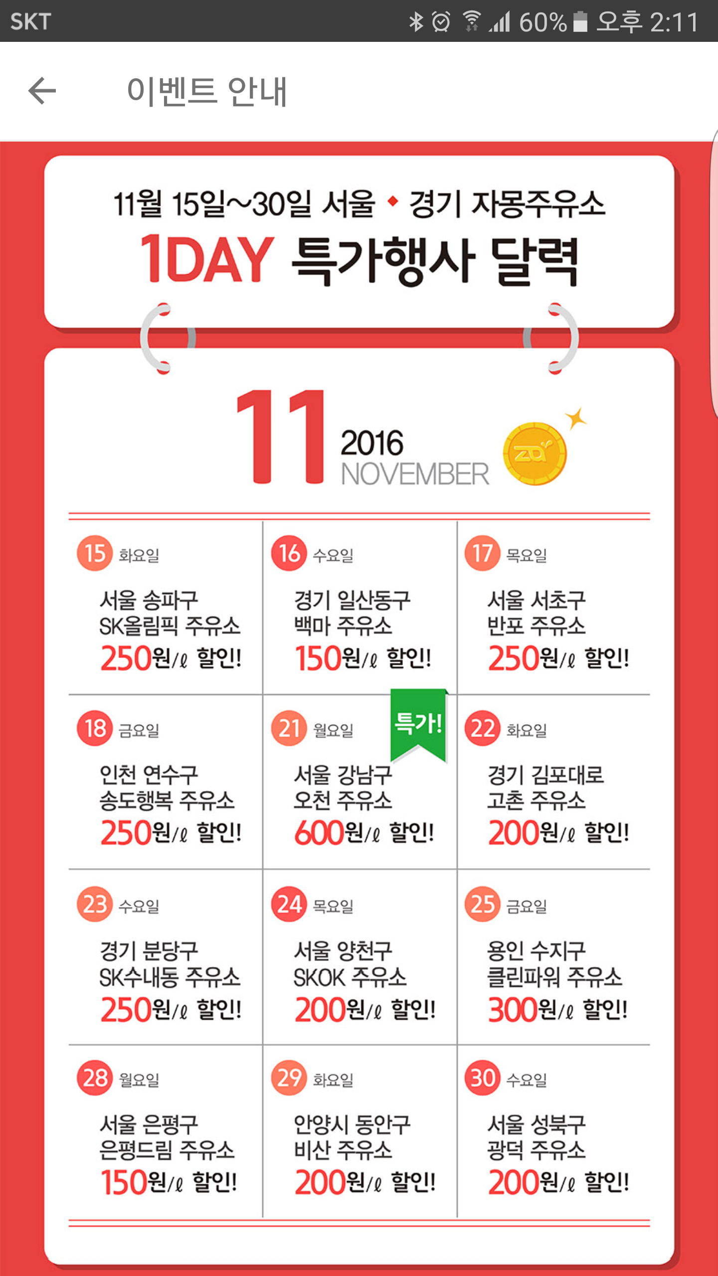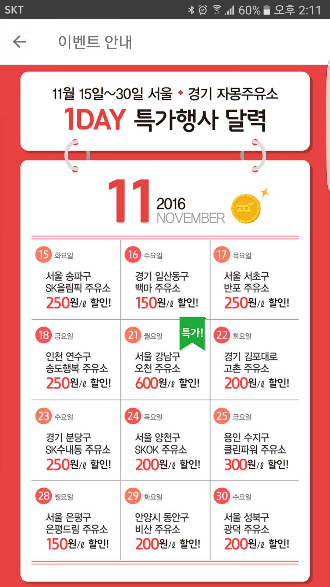 오 감사합니다 매번 주유하는 반포주유소가 목요일 이네요 일정등록해놨어요 :)