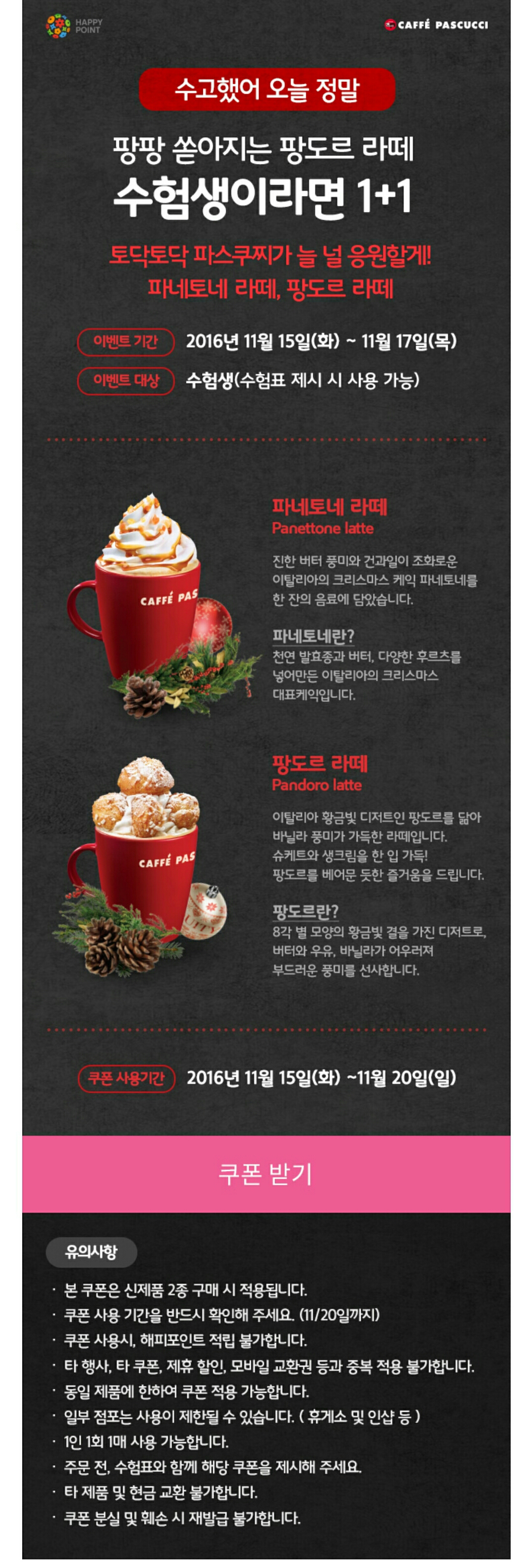 해피포인트 고객 특별 혜택! 팡팡 쏟아지는 팡도르 라떼 수험생이라면 1 1