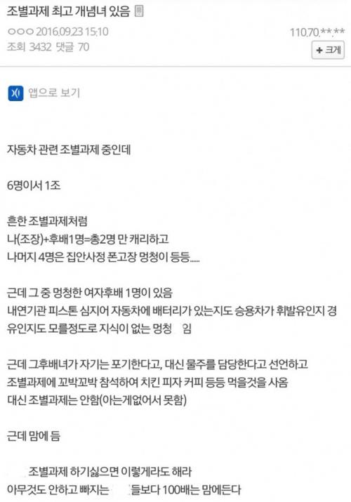 자기가 캐리할 자신만 있으면 오히려 저런 사람이 같이 조별과제 하고싶은 사람 1순위일듯 ㅋㅋㅋㅋ | ||