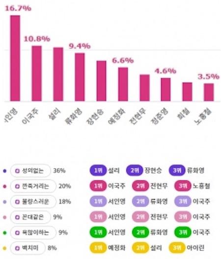 아주 최근 조사인가보군요...화영이 상위권에 많은거보니 | ||