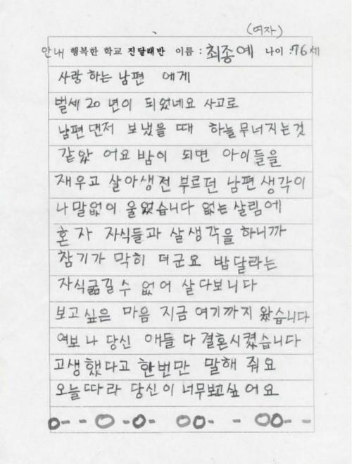 이게 한글배운 할머니가 첨으로 쓴 편지라고.. | ||