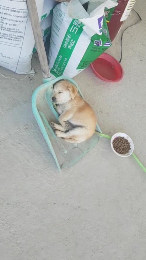 강아지들 맨바닥을 시러하나봄 | ||
