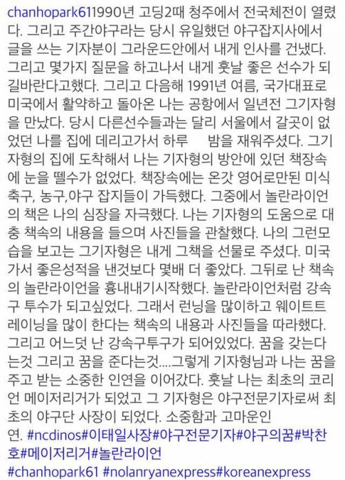 박찬호가 말이 많은건 익히 봐와서 알고 있지만 또 그런 선비 같은 성격덕에 메이저리그 생활하면서 큰 사고나 사건없이 지낼 수 있었던거 아닐까 하네요. | ||