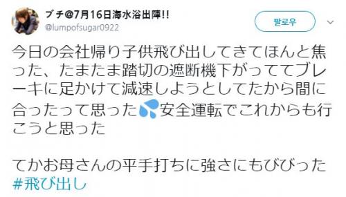 퇴근길에 애가 갑자기 튀어나와서 식겁했다.