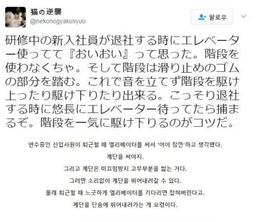 엘베 안에서 귀찮은 일이 생길거니까 계단으로 가라는거 아닐까 상상하면서 들어왔는데 얼추 맞았네요 ㅋㅋㅋ 좋은선배닷 | ||