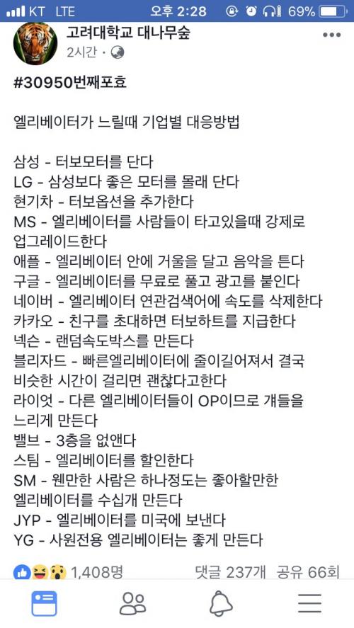 LG면 삼성 엘리베이터를 파손한다가 더 정답 같은데; | ||