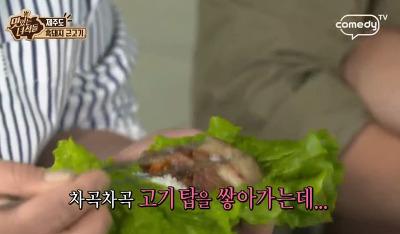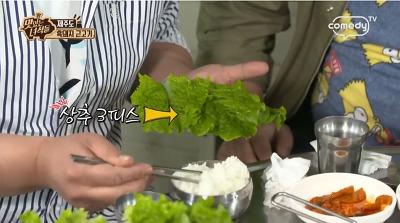 상추3장 밥 반공기 꽃멸치 젓갈 두마리 고기8점 한입에 다 먹어삼킨 문세윤의 첫마디