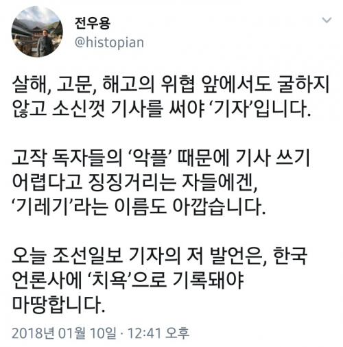그 발언 조선일보 기자였군요..... ㅋㅋㅋㅋㅋㅋ